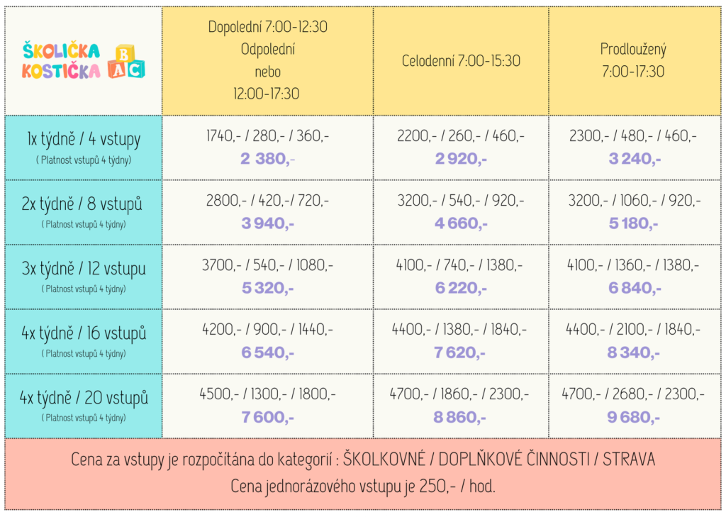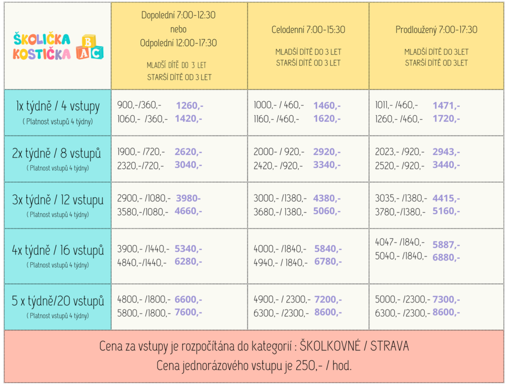 Ceník školkovného